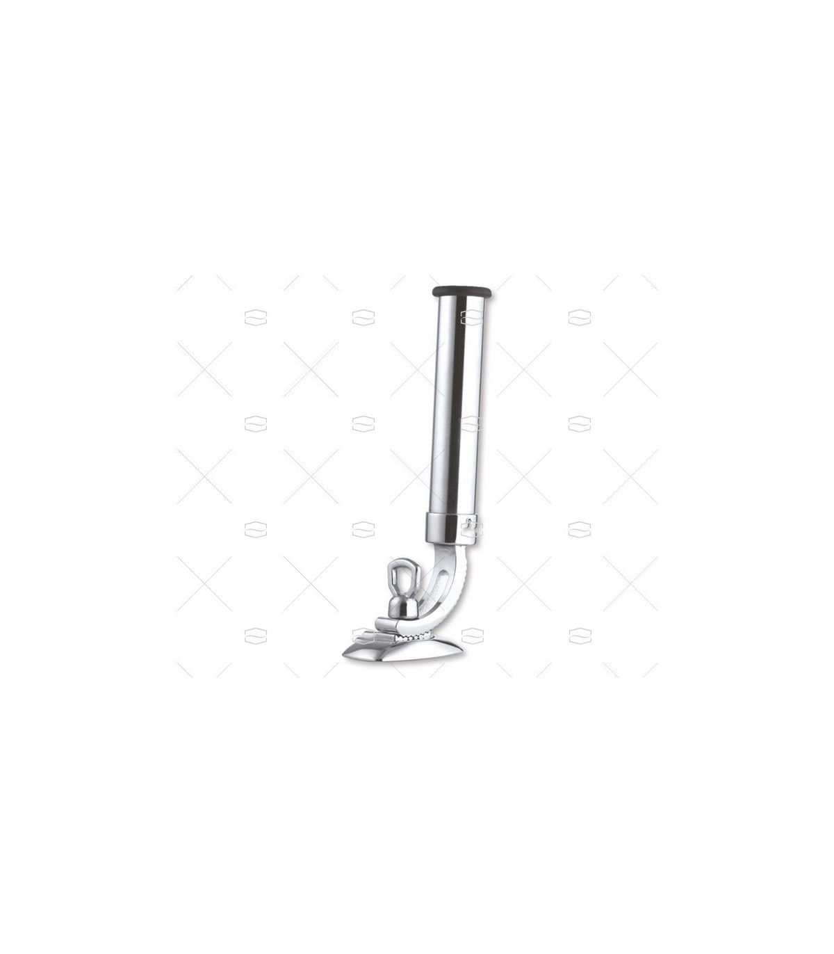 Portacañas orientable con goma de protección. Base de 90x60mm en acero inoxidable. Diámetro del tubo de 40mm. Distancia del portacañas 255mm, largo total con soporte de 355mm.