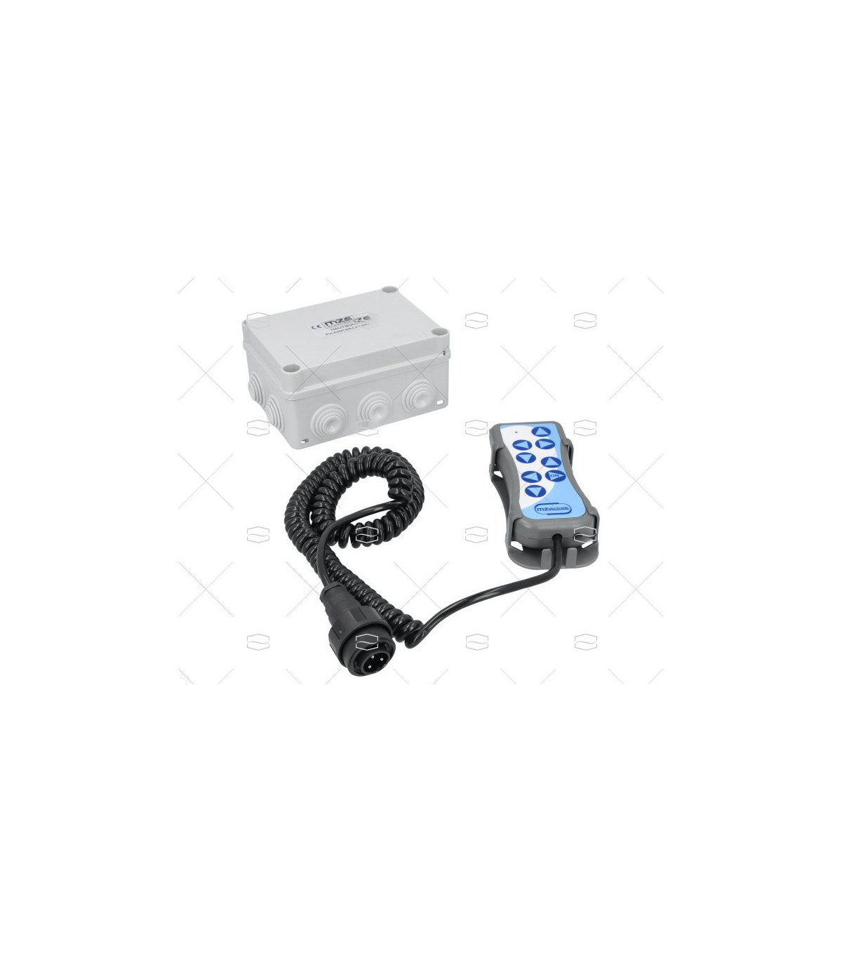 Kit mando a distancia compuesto de caja electrónica, 10-30V. Mando con cable, enchufe y base de cubierta, de 6 y 8 funciones, para molinetes, pasarelas, pescantes...