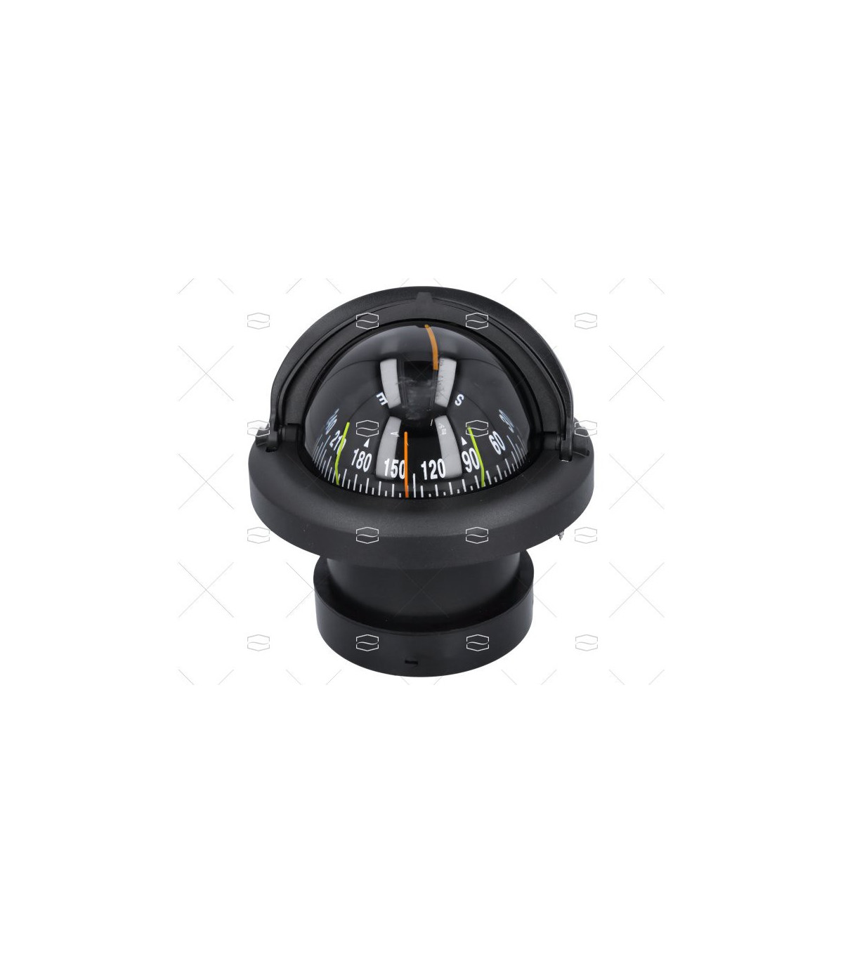 Compás encastrable . Suspensión cardánica interna. Iluminación led 12 V. (sobre pedido 24 V). Lectura frontal, división roseta 5º azul, diámetro aparente 100mm. Con tapa incorporada. Con rosa color negro