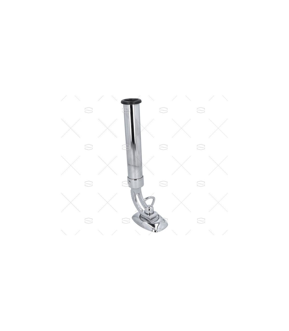 Portacañas orientable de latón cromado con goma de protección y base de 93x63mm. Diámetro de tubo de 32mm, altura de 200mm y altura total de 270mm.